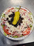 Mushrooms, olives, tomatoes, onion, bell pepper.